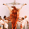 HN: Film and video are only representations of the event. The event is a feast for the senses. It's very important to be in my performance to fully realize my art and my work. Without the smells of the carcasses and flowers, without the taste of the fresh meat and the wine, you are left with very little of the performance. To hear it, to taste it, to feel it, to see it... it is a feast of existence.